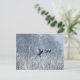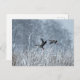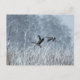 Pair of greylag geese flying in front of snow covered reeds postcard.