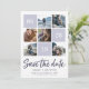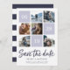 Announce your upcoming nuptials with these chic save the date cards featuring six of your favourite square photos and your wedding date in a gridded layout. "Save the Date" appears beneath in a fresh, casual handwritten script brush marker typeface. Personalise with your names, wedding location and website or other information in rich midnight blue. Cards reverse to wide horizontal stripes.