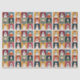 A festive grid of nine cheerful snowmen, each uniquely dressed in colourful hats and scarves. Set against a textured snowy background, this playful design brings winter joy and cosy charm to holiday décor, seasonal gifts, and wrapping.