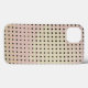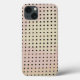 The original pattern on this iPhone 13 Case is exactly what it's called, a grid pattern made from an original photograph by HomeWare of the back of a chair. Dark grey and brown square dots in rows form the grid. The rows curve slightly as the chair does. Up close, the little square dots are holes with rounded corners and a shadow dimension around the upper and right hand edges. The colours of the body of the chair are muted tones from nature, pale sage green blending into pale mauve, then soft, sandy brown, looking as if they'd been painted on. This abstract design, with its sophisticated colour scheme, has a very modern look.