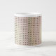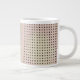 The original pattern by HomeWare on this giant Mug is exactly what it's called, a grid pattern made from an original photograph of the back of a chair. Dark grey and brown square dots in rows form the grid. The rows curve slightly as the chair does. Up close, the little square dots are holes with rounded corners and a shadow dimension around the upper and right hand edges. The colours of the body of the chair are muted tones from nature, pale sage green blending into pale mauve, then soft, sandy brown, looking as if they'd been painted on. This abstract design, with its sophisticated colour scheme, has a very modern look.