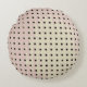 The original pattern by HomeWare on this Round Pillow is exactly what it's called, a grid pattern made from an original photograph of the back of a chair. Dark grey and brown square dots in rows form the grid. The rows curve slightly as the chair does. Up close, the little square dots are holes with rounded corners and a shadow dimension around the upper and right hand edges. The colours of the body of the chair are muted tones from nature, pale sage green blending into pale mauve, then soft, sandy brown, looking as if they'd been painted on. This abstract design, with its sophisticated colour scheme, has a very modern look.