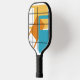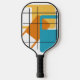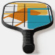 This pickleball paddle has a mid-century modern design of three rectangles, orange, green, and turquoise, with a white rectangle inside each. If you like the design but prefer different colours, message me.