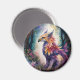 Magnet features vibrant watercolor artwork of a majestic griffin in a night forest; a colourful fantasy animal portrait with an ethereal touch.