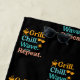 Black background. Quote: Grill. Chill. Wave. Repeat. as a pattern.