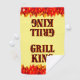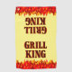 Grill King funny cookout saying in a western flaming font for cooks and cookout chefs. With graphic art of red and orange flames on the ends of the towel - perfect for hanging on your BBQ.