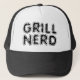Grill Nerd funny trucker hat for BBQ chef. Vintage typography design. Cool barbecue gift idea for men who love cooking and grilling outdoors. Make a cap for cooking dad, husband, brother, uncle, grandpa, boyfriend etc.