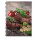 Grilled bbq steaks with fresh herbs and tomatoes notebook
