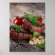 Grilled bbq steaks with fresh herbs and tomatoes poster