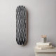 Sidewalk grillwork forms an intricate abstract pattern on this industrially-influenced skateboard.
