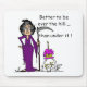 Stella as the grim reaper on funny birthday T-shirts, buttons, mugs, magnets, keychains, bags, stickers, and more with Stella proclaiming it's better to be over the hill than under it!
