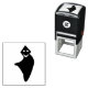 This awesome self inking stamp features an image of the Grim Reaper created using vectors. He stands menacingly holding his scythe in his bony white hand. His sunken purple eyes and demonic grin are only just visible underneath his black cloak.
