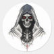 Unleash your dark side with this striking Grim Reaper skull sticker. Perfect for Halloween, gothic themes, or adding an edgy touch to your belongings. Durable and eye-catching, ideal for laptops, water bottles, or notebooks.