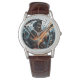 The watch looks really great! Very sharp and well done. The leather band is really nice, though for a man's watch I think it should be longer. Unfortunately, it isn't big enough for my husband's wrist but I will get a replacement because he is very excited to wear it!