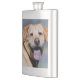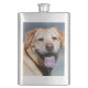 The product is a good size and came exactly as it was pictured. The lid is not attached to the flask, which could be dangerous on drunken nights... The print came out surprisingly well and looks very sharp. Would definitely recommend.