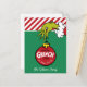 Send some Grinchy cheer this year with this adorable holiday postcard! The top features a fun peppermint candy cane stripe, and the rest is a festive green. The design stars the one and only Grinch reaching for a big red ornament that shouts, "merry GRINCHmas and Happy New Year!" It includes a charming spot for a custom family name at the bottom, making it the perfect, whimsical card to mail to everyone on your list!