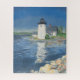 Grindle Point Lighthouse puzzle. This jigsaw puzzle features Grindle Point Lighthouse gleaming in the late morning sun of a spring day in Islesboro, Maine. The painting uses a brilliant palette of blues, greens, greys, and oranges to create a beautiful, calm view of the unique square lighthouse tower and lightkeeper’s house.