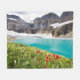 This photo features a stunning turquoise coloured water at the base of Grinnell Glacier in Glacier National Park in Montana.