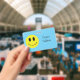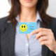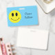 This classic grin face badge can be customised with any name or text.