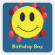 Classic grin face surrounded by red balloons and birthday boy text.