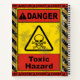 Biohazard themed artwork inspired by health and safety, biological waste, warning signs and grinning skull and crossbones.