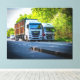 Captured in the heart of Herefordshire—home to the elite SAS regiment, the world-renowned Bulmer’s Cider, and the iconic Herefordshire Bull—this vibrant image showcases two heavy-duty trucks powering along the A49, framed by summer foliage and the rolling hills of the West Midlands. A MAN livestock hauler, bright and imposing, shares the road with a Scan Stone-branded IVECO, representing British industry and agricultural strength.