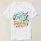 This inspiring t-shirt features the phrase "Grit to Great" written in bold, multi-coloured letters, surrounded by abstract shapes and splashes of colour. The design conveys a message of perseverance, determination, and the power of hard work to achieve greatness. Perfect for anyone who seeks motivation and inspiration.