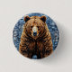 Vibrant artwork depicting a bear with a rich, textured fur coat, set against a patchwork background featuring blue and grey tones. The bear stands imposing and lifelike, capturing attention with its realistic features.