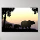 A mother grizzly bear and her two cubs come down the mountain after a long winter. Computer art by Kathie Miller