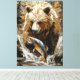 Grizzly Bear Fishing in Dynamic Impasto Style Canvas Print