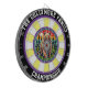 Circular art of a powerful grizzly bear in a forest, framed with a target overlay
