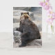 Grizzly bear sitting backwards on a rock for funny birthday.