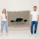 Walking Grizzly Bear with Cubs Silhouettes Throw Blanket. Personalise with your own text for a cool custom gift. A rustic country throw blanket perfect for your wilderness cottage. Makes a fun personalised gift for wildlife lovers and outdoor adventurers.