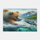 Featuring a breathtaking view of a Grizzly Bears at Katmai National Park Alaska with a steelhead trout salmon