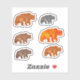 Stickersheet with 6 grizzlybears in various colours and sizes. The colours range from grey to dark and reddish browns.