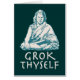 Grok: (grahk): share the same reality or line of thinking with another physical or conceptual entity. "Grok Thyself" with a cross-legged guru drawing, on t-shirts, hoodies, cards, gifts.