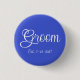 Button Pin casual fun fashion statement accessory printed with Royal Blue Colour background and Groom in White Colour text typography lettering design by TheFabricSeal print on demand shop at Zazzle.com #ZazzleMade https://www.zazzle.com/store/thefabricseal TheFabricSeal©️Original.