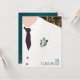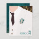 Add some style to your best friend's bachelor party with tuxedo-clad invitations from Kustom By Kris. The front reads "The Groom" and features a man in a tuxedo in front of a brocade wallpaper. Personalise the dark teal back with the bachelor party details.