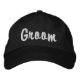 "Groom" Embroidered Hat is great for wedding showers, bachelor parties, honeymoons, etc. There's a white bride's hat to match.