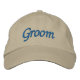 Custom Embroidered Alternative Apparel Basic Adjustable Baseball Cap Hat in Khaki Colour with Groom in Royal Blue text typography lettering and digital graphic design by TheFabricSeal print on demand shop at Zazzle.com #ZazzleMade https://www.zazzle.com/store/thefabricseal TheFabricSeal©️Original.