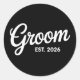 Groom Est 2026 Matching Getting Ready Wedding Classic Round Sticker