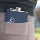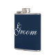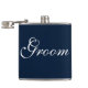 Flask for the groom is shown in navy blue and white.