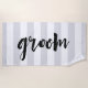 Soak up rays on your honeymoon with our "GROOM" beach towel that shows off your newlywed status! Design features light grey and white stripes with "groom" in black handwritten style brush lettering. Matching "bride" style available in our shop!