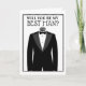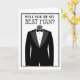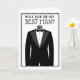 A headless mannequin wearing a stylish black and white tuxedo and black bow tie is framed by a black border and has the words will you be my best man below him. The overall feel is minimalist style and elegance. This is ideal for summer; spring; winter and fall weddings. Feel free to delete or move the templates around and to change the size and style of the fonts if preferred.