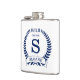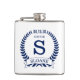 This 6 oz. flasks is perfect for the groom. It is traditional yet modern with a blue laurel wreath and banner with the wedding date, title/job and first initial and first name all in blue. It'd be great for a bachelor party or weekend. Get one for everybody in the bridal party - they'll love them! The title can easily be changed to best man, groomsman, usher, etc.