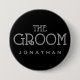 Identify the members of your wedding party with these personalized faux-glitter on black name tag buttons. ‘The Groom’ is spelled out in silver glitter-look typography. Below, customize it with a name (or text of your choice), using the easy to use provided template. Please check my store for button designs available for all members of your wedding party!