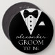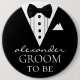 Groom To Be Tuxedo With Name On A Huge Pin Back