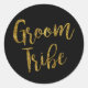 Groom Tribe Gold Leaf Script Classic Round Sticker