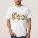 My fiance loves it! I told him it's his bachelor party tee, and he said it's his EVERY day tee. The t-shirt is standard--I order from here all the time and have never been disappointed. Like the others, this is perfect. Looks good--the text is brownish in color. (A nice change from black.)