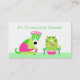 Cute business card for pet groomers. Dog in curlers and a towel with a cat filing its claws and soaking its feet. White background and bright colours.